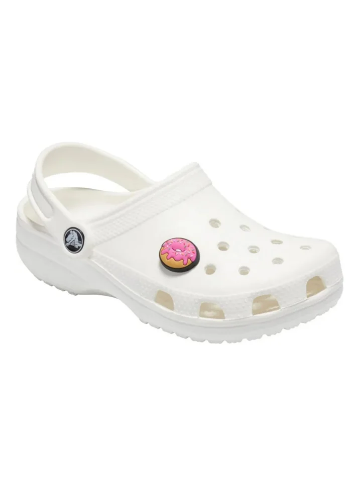 Этот декоративный Jibbitz-аксессуар от Crocs представляет собой стильный розовый пончик, который добавит игривый и сладкий акцент вашей обуви.- Изготовлен из прочного и легкого материала, обеспечивающего надежное крепление в отверстиях обуви Crocs.