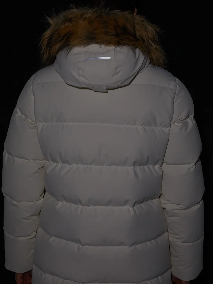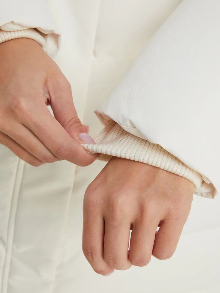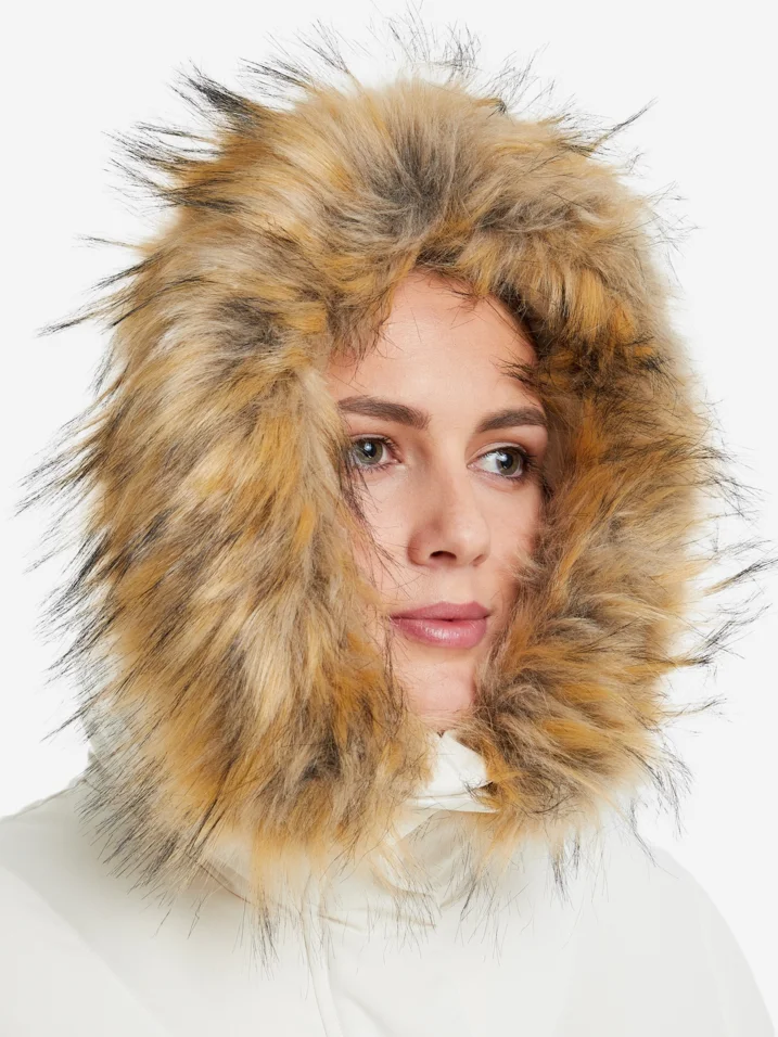 Уютный капюшон с опушкой из искусственного меха защитит вас от осадков и холодного ветра.